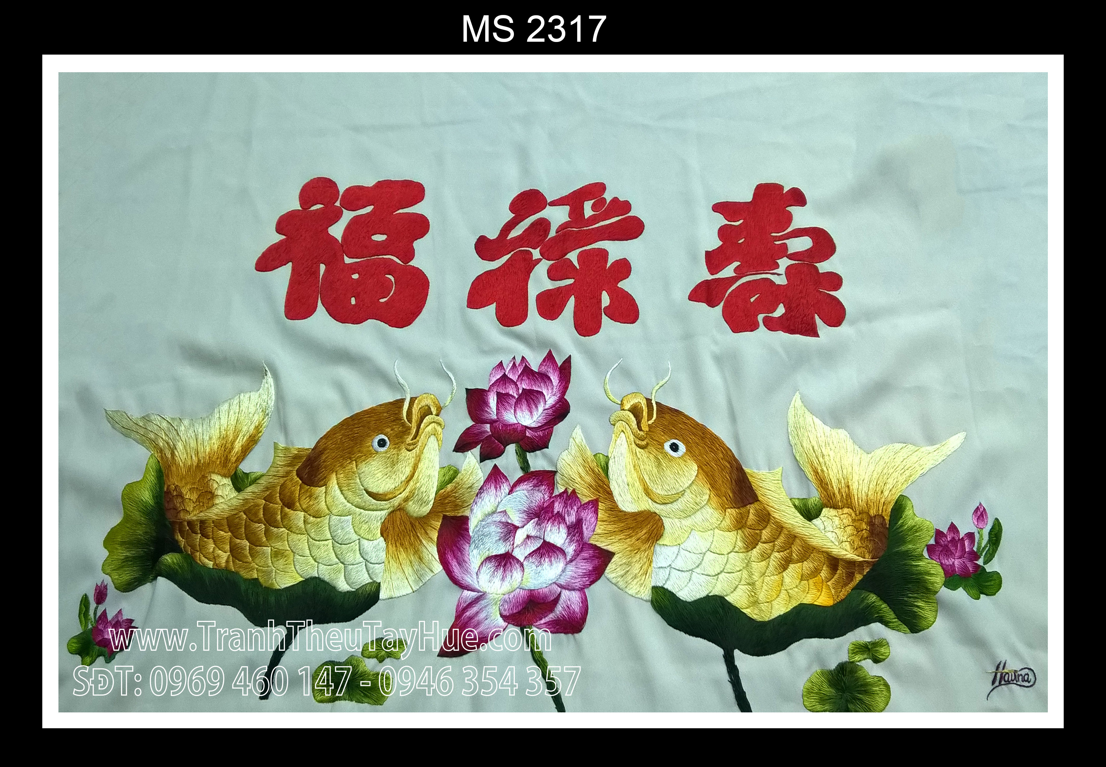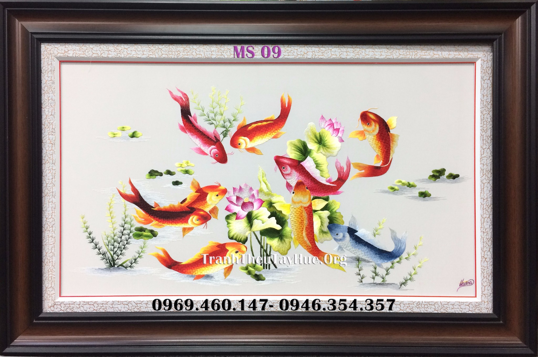 Một số mẫu tranh thêu Cá chép hoa sen của tranh thêu tay Huế