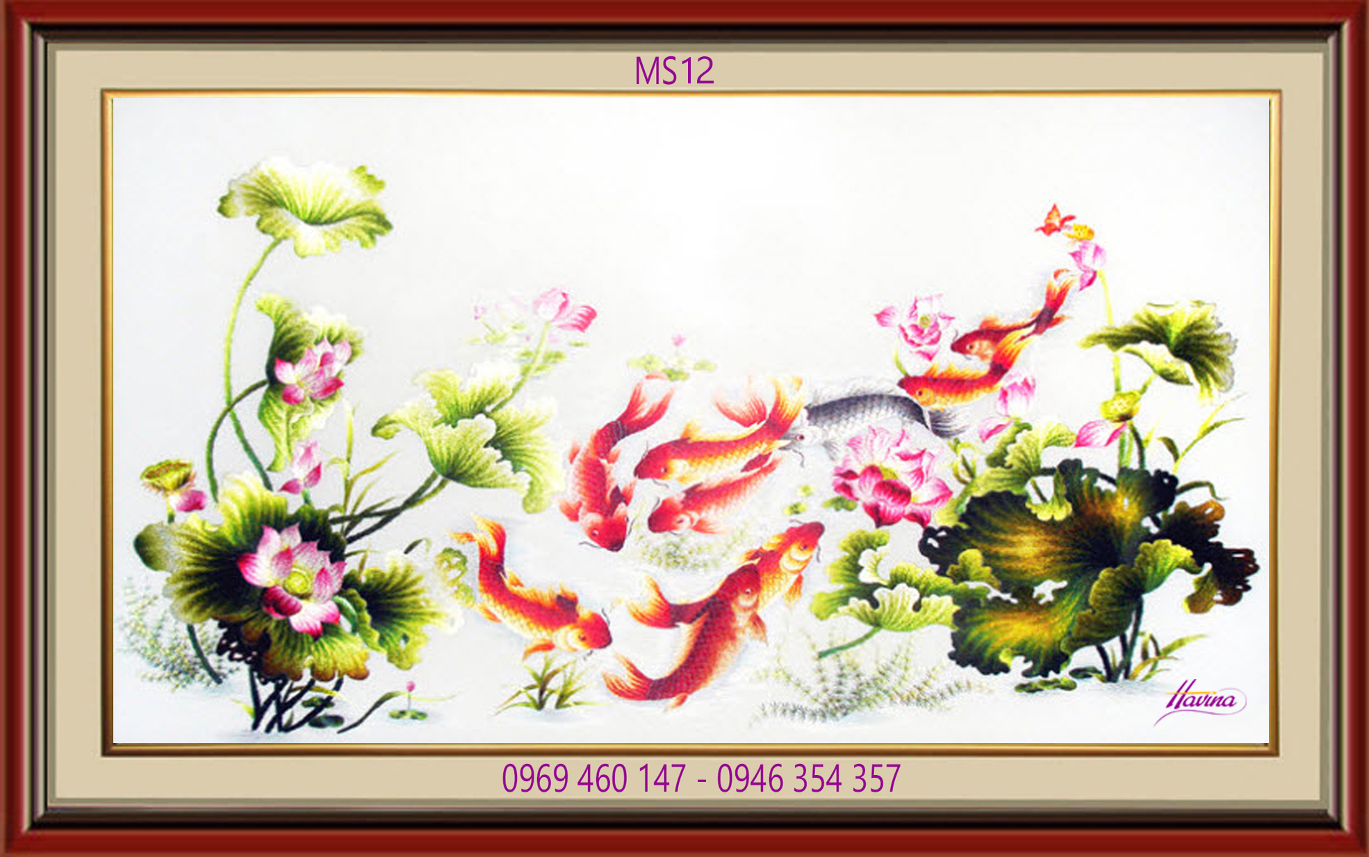 Xem thêm video tranh thêu Cá chép hoa sen: