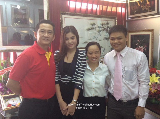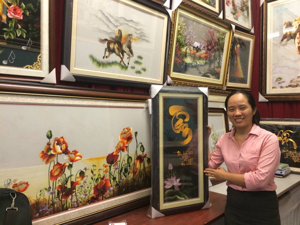 Khách hàng đến showroom Tranh Thêu Tay Huế