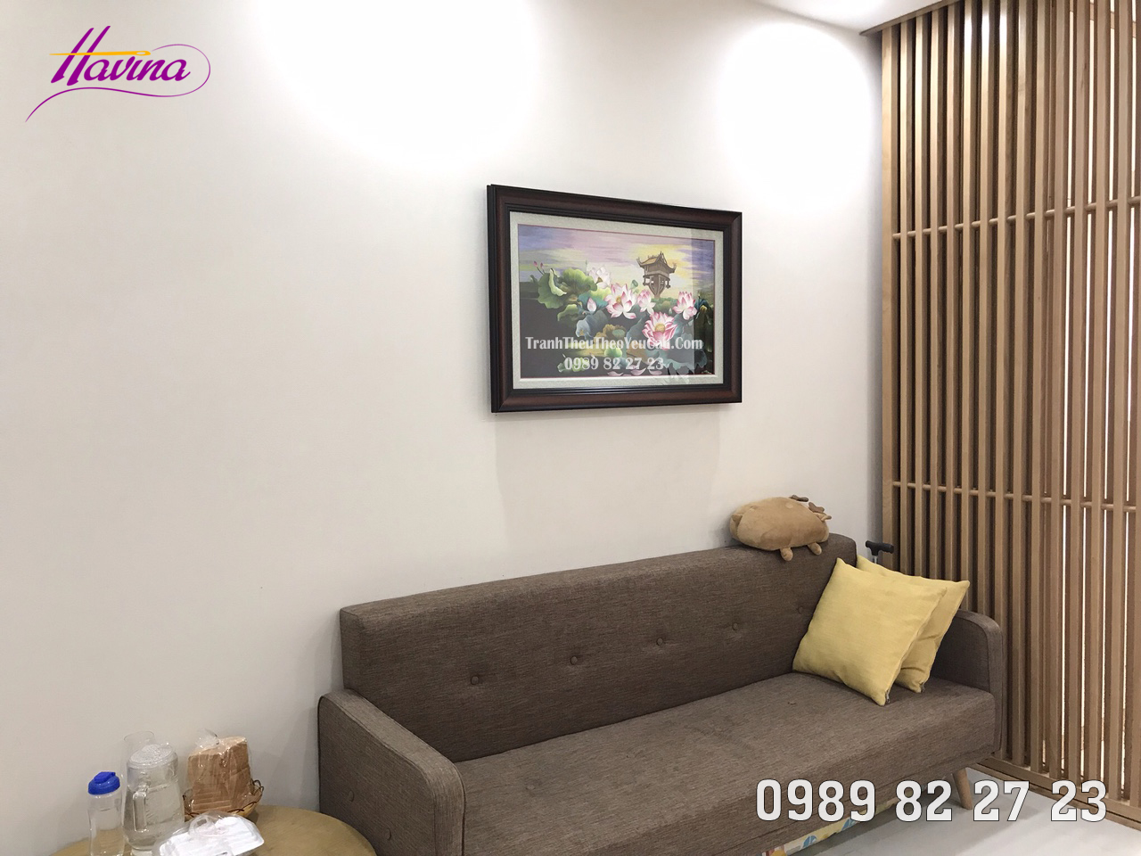 1.Treo tranh thêu tay ở phía trên ghế sofa