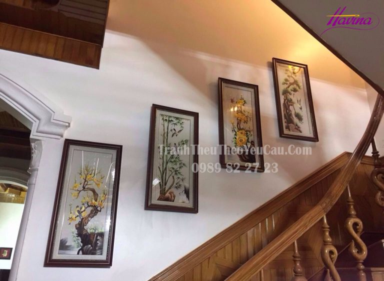 Đa phần tưởng chổ cầu thang lên xuống hay bị chúng ta bỏ quên vì thế đây là nơi cực kỳ thích hợp để treo những bức tranh thêu trang trí. Vị trí này cũng giúp cho bạn nhìn thấy toàn bộ bứctranh, nên treo ở đây những bức tranh có màu tươi sáng