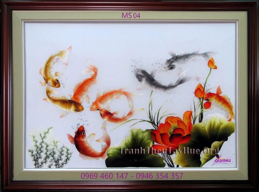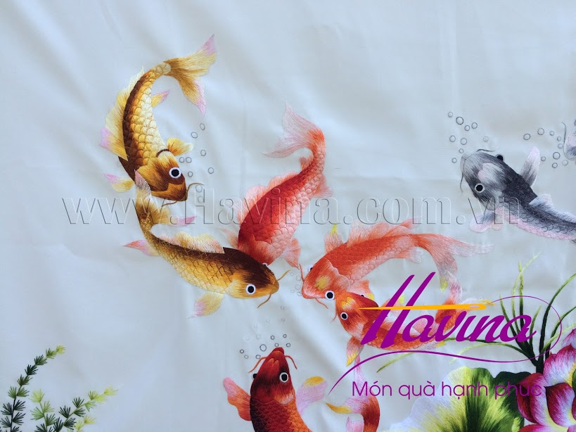 Xem thêm video tranh thêu Cá chép hoa sen:
