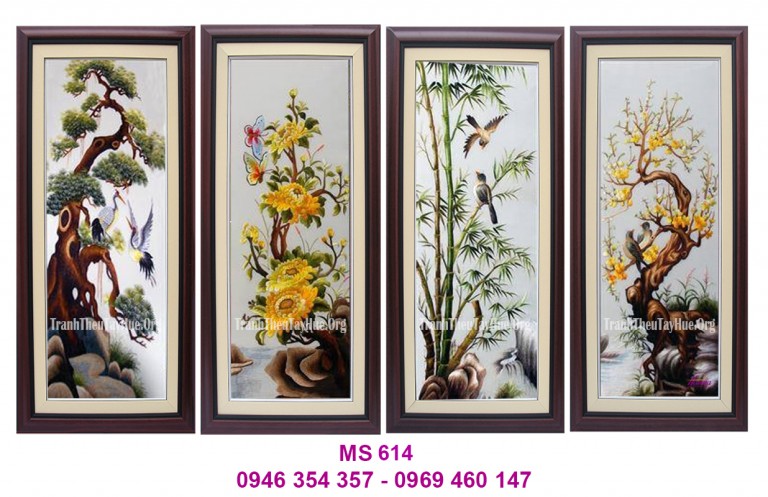 Tranh thêu tứ quý là bộ tranh thêu treo cầu thang gắn liền với hình ảnh của các loài cây đại diện cho 4 mùa trong năm.