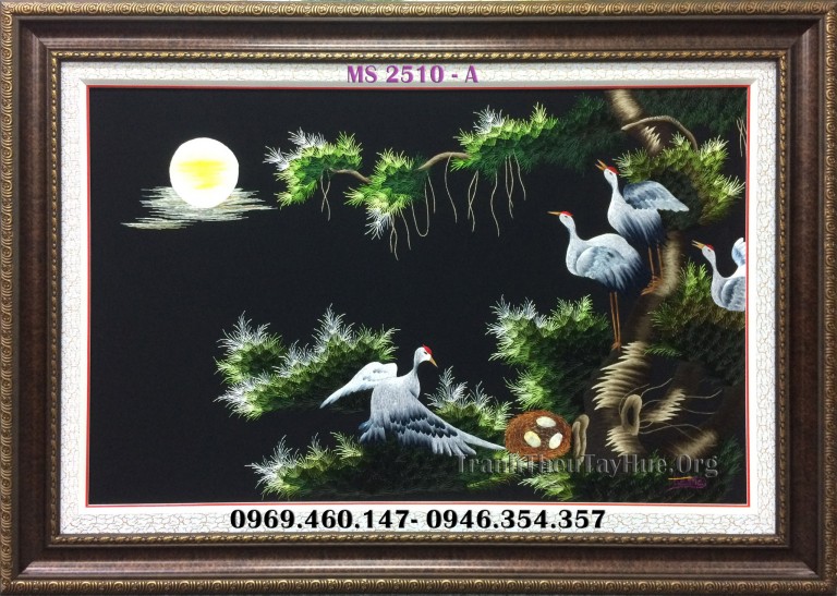Tranh thêu tùng hạc diên niên là một tác phẩm tranh thêu phong thủy rất có ý nghĩa. Tùng thường đi đôi với Hạc, để tăng tính biểu trưng cho sự trường thọ, ngay thẳng và trong sạch. “Diên niên” trong Hán Việt có nghĩa là lâu năm, cũng mang ý nghĩa trường thọ, an lạc. Tranh thêu phong thủy tùng hạc diên niên sẽ mang lại sự sung túc, sum vầy và thịnh vượng cho gia đình của gia chủ.