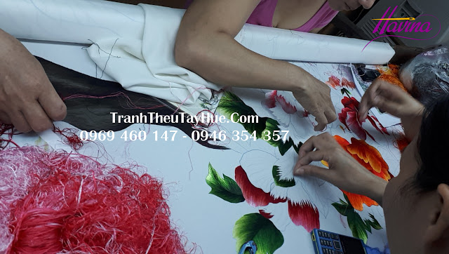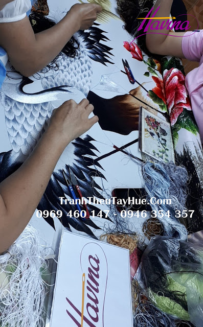 Video về tranh thêu tùng hạc hoa mẫu đơn