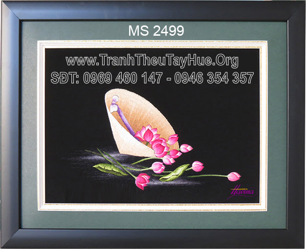 Chị Mai đặt thêu tranh thêu nón lá hoa sen MS 2499