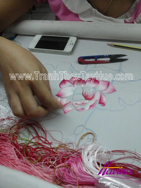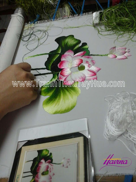 Bức tranh thêu hoa sen mà chị Oanh đặt thêu