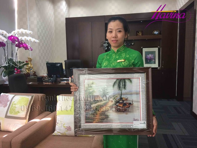 Chị Thương đến từ ngân hàng Vietcombank, chi nhánh Nam Sài Gòn, quận 7, TPHCM liên hệ với chúng tôi để đặt mua tranh thêu phong cảnh làng quê ms 2029 làm món quà cho Sếp tặng đối tác.
