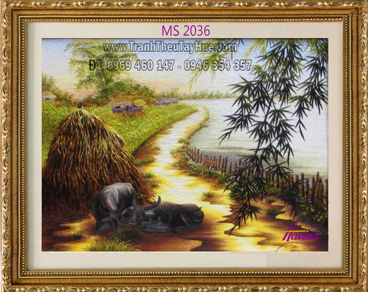 Chị Tú đến từ ngân hàng Shinhan đã liên hệ với tranh thêu tay Huế và chọn mua tác phẩm tranh thêu phong cảnh làng quê ms 2036 để làm quà tặng cho sếp trong chuyến công tác từ Hàn Quốc sang Việt Nam.