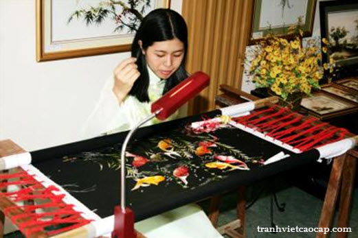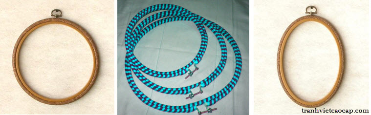Ngoài ra thợ thêu có thể dùng khung thêu khớp 2 vòng tròn bằng gỗ hoặc kim loại