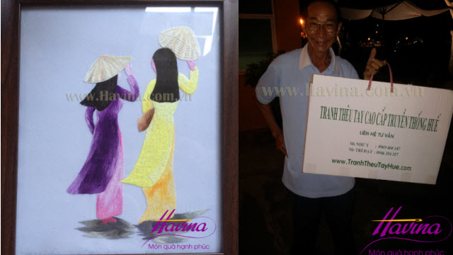 Chính vì những điều trên mà tranh thêu Havina chúng tôi đã cho ra một loạt sản phẩm chuyên để dành tặng cho đối tác, từ đối tác Việt Nam cho đến đối tác người nước ngoài. Bên cạnh sản phẩm tranh thêu dành tặng người nước ngoài thì chúng tôi còn có đội ngũ tư vấn cho bạn về thể loại nào? Thích hợp tặng cho ai nữa à.? Vì điều này mà chúng tôi hiện nay rất được mọi người quan tâm đến trên thị trường. Cũng chính nhờ sự biết đến của nhiều người mà chị Thảo một nhân viên của công ty xuất nhập khẩu tại Bình Dương đã biết và tìm đến chúng tôi.