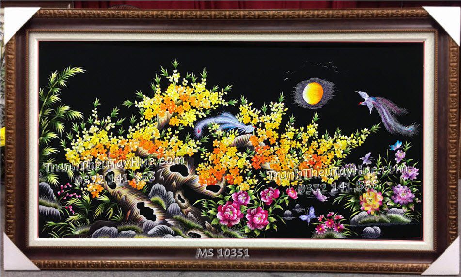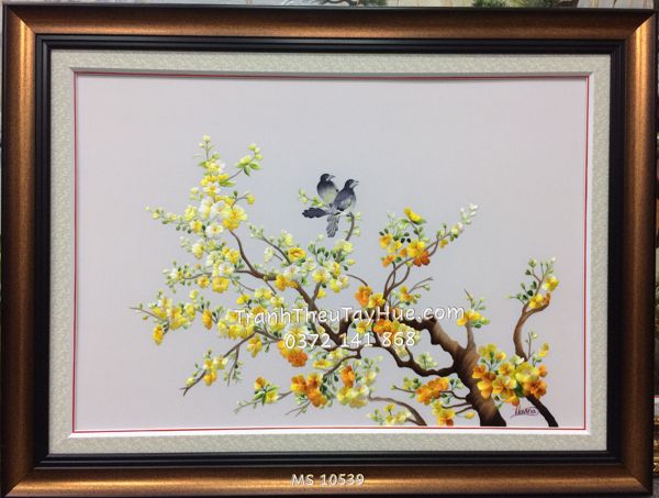 Hoa mai, với những bông hoa rực rỡ, là một trong những biểu tượng truyền thống nổi tiếng của Việt Nam. Nó tượng trưng cho sự may mắn, tài lộc, và sự tươi mới của mùa xuân. Trên những bức tranh thêu, hình ảnh hoa mai được thể hiện với sự tinh tế, tạo nên một tác phẩm nghệ thuật sống động và tinh tế.