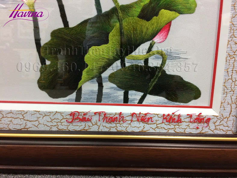 Xem thêm video tranh thêu hoa sen