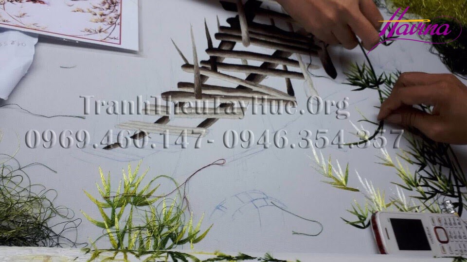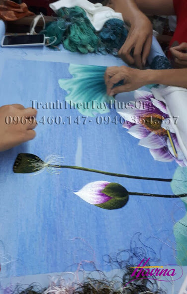 Quá trình các nghệ nhân của chúng tôi hoàn thiện bức tranh thêu hoa sen