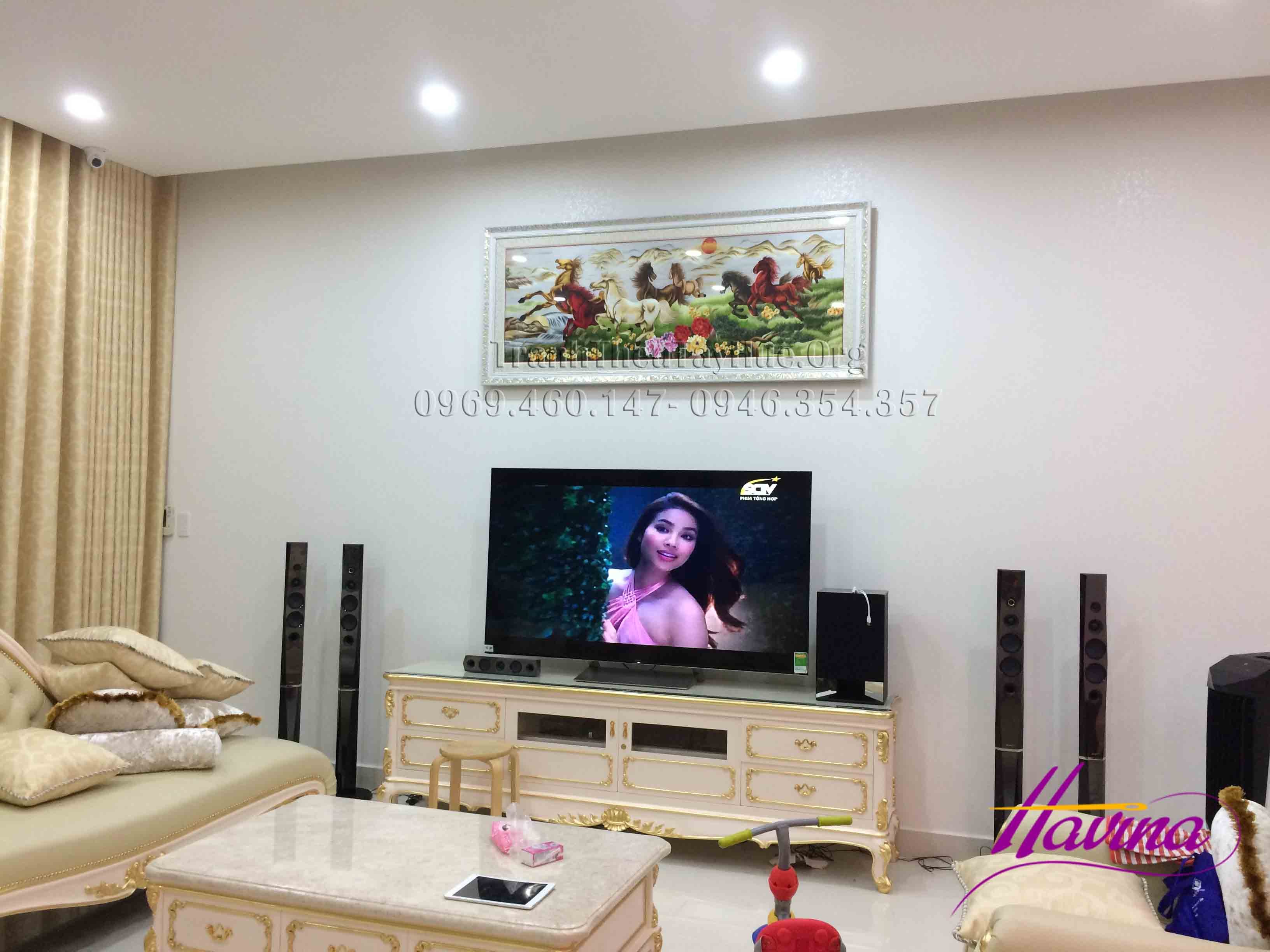 Bức tranh thêu Mã đáo thành công được treo ở phòng khách nhà chị Hạnh
