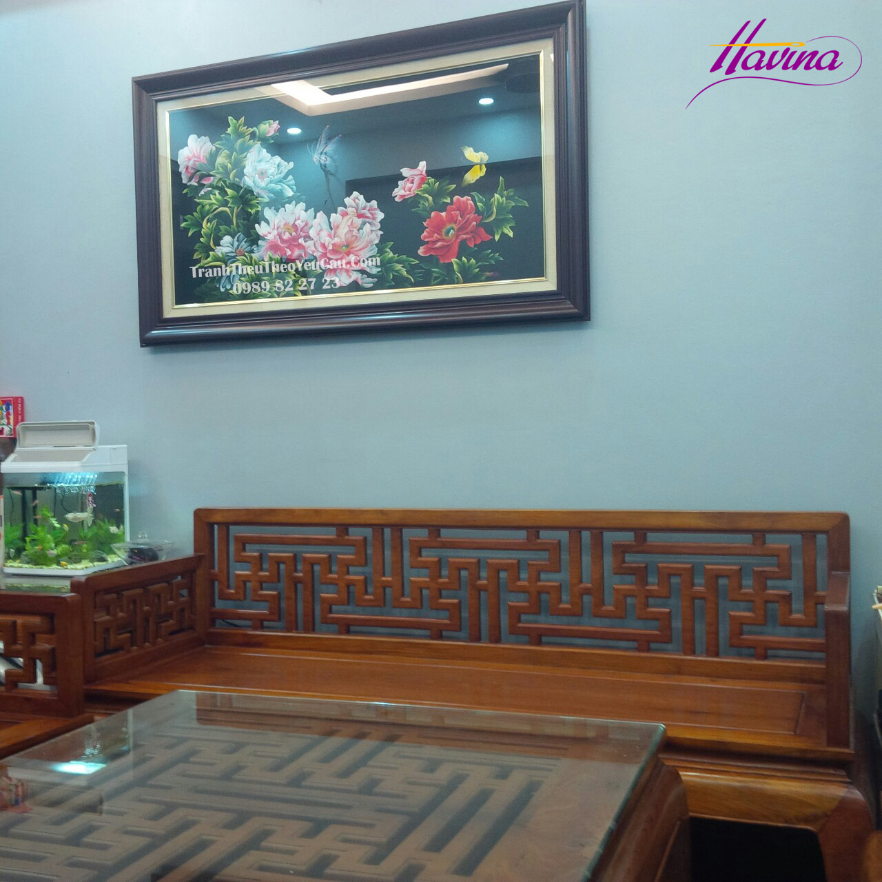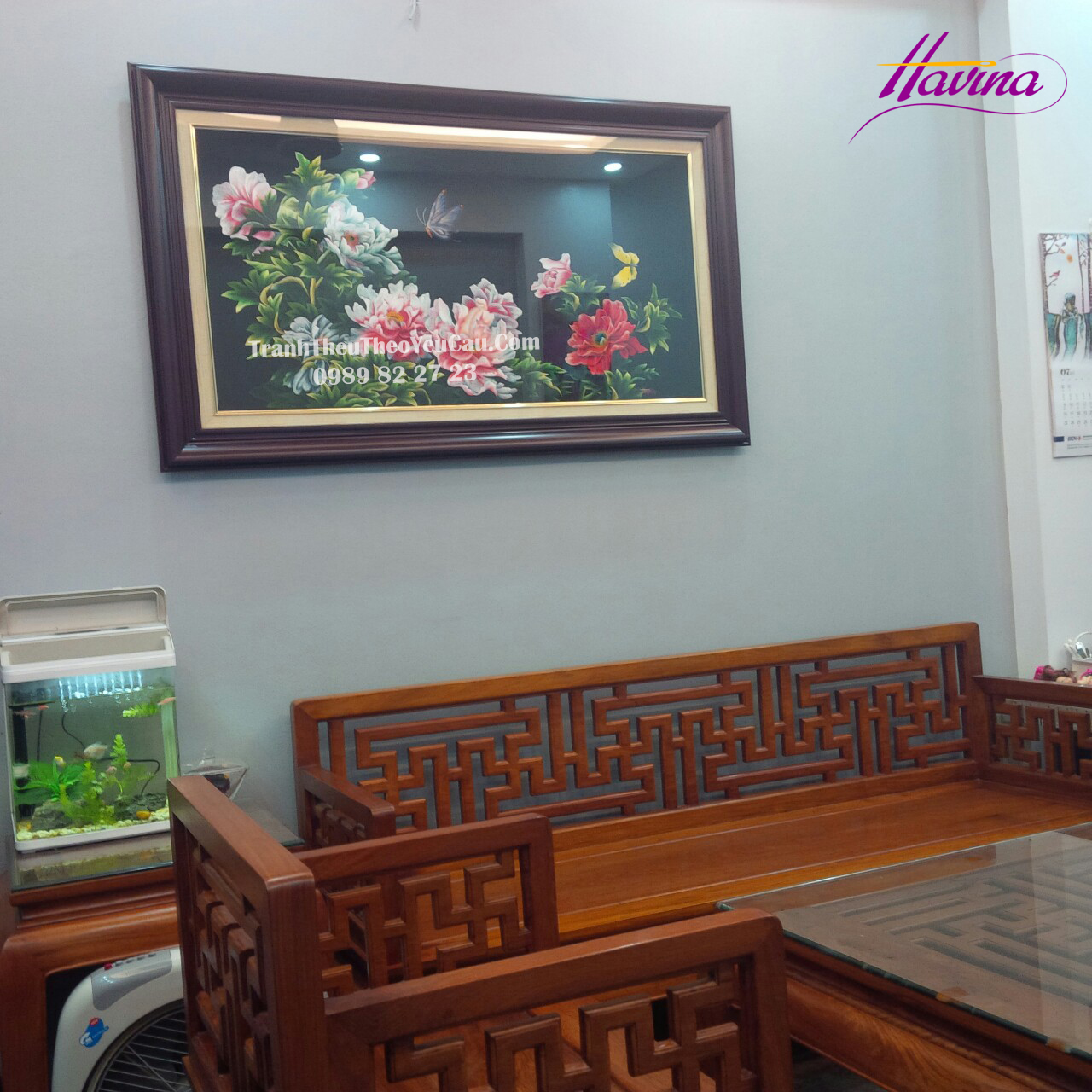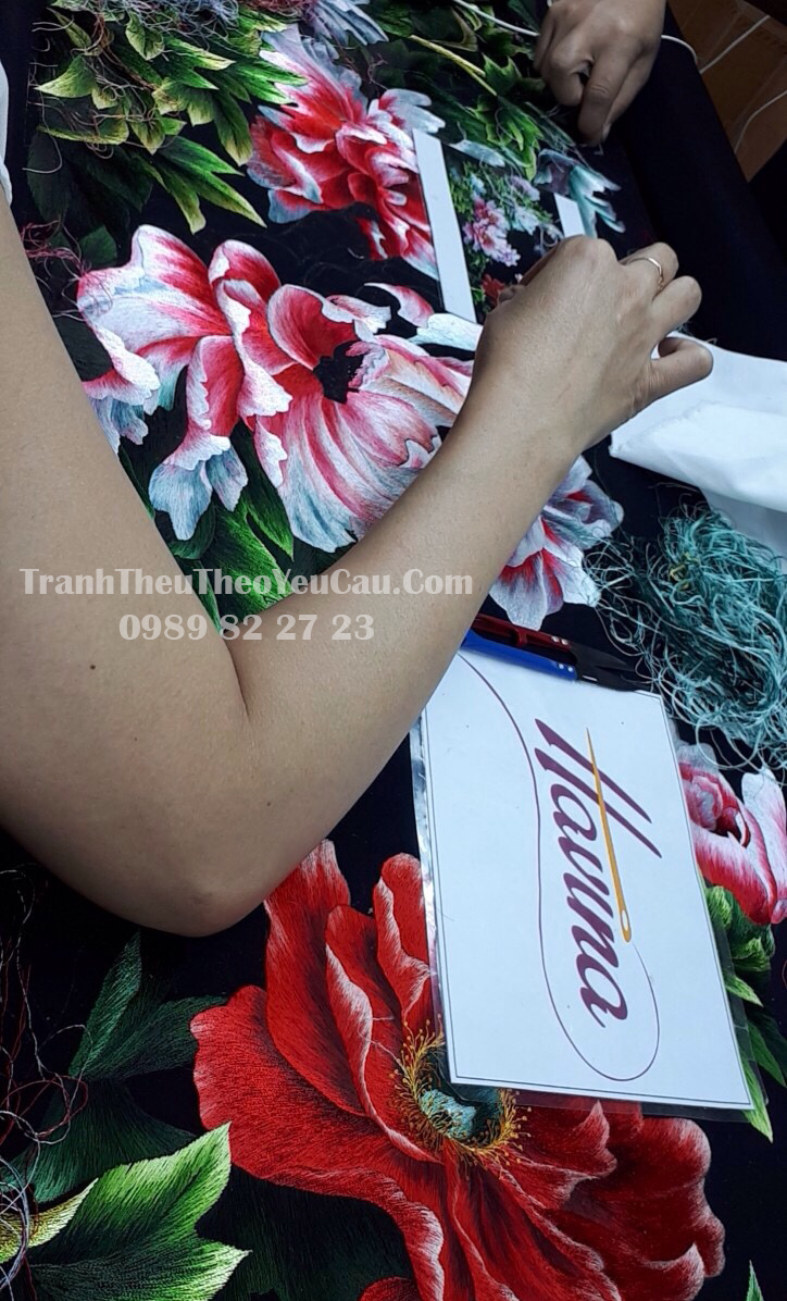 Hoàn thiện tranh thêu hoa mẫu đơn theo yêu cầu của anh Tân