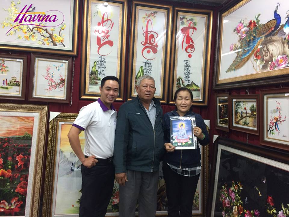 Trước đó, cô chú từ Tiền Giang lên tận showroom của chúng tôi ở TPHCM để xem và đặt thêu tranh. Sau khi thống nhất về mẫu mã, kích thước và màu sắc, chúng tôi tiến hành thêu tranh theo yêu cầu của cô chú.