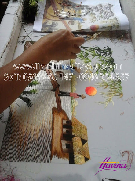 Hoàn Thiện Tranh Thêu Phong Cảnh Làng Quê Cho Chị Ly