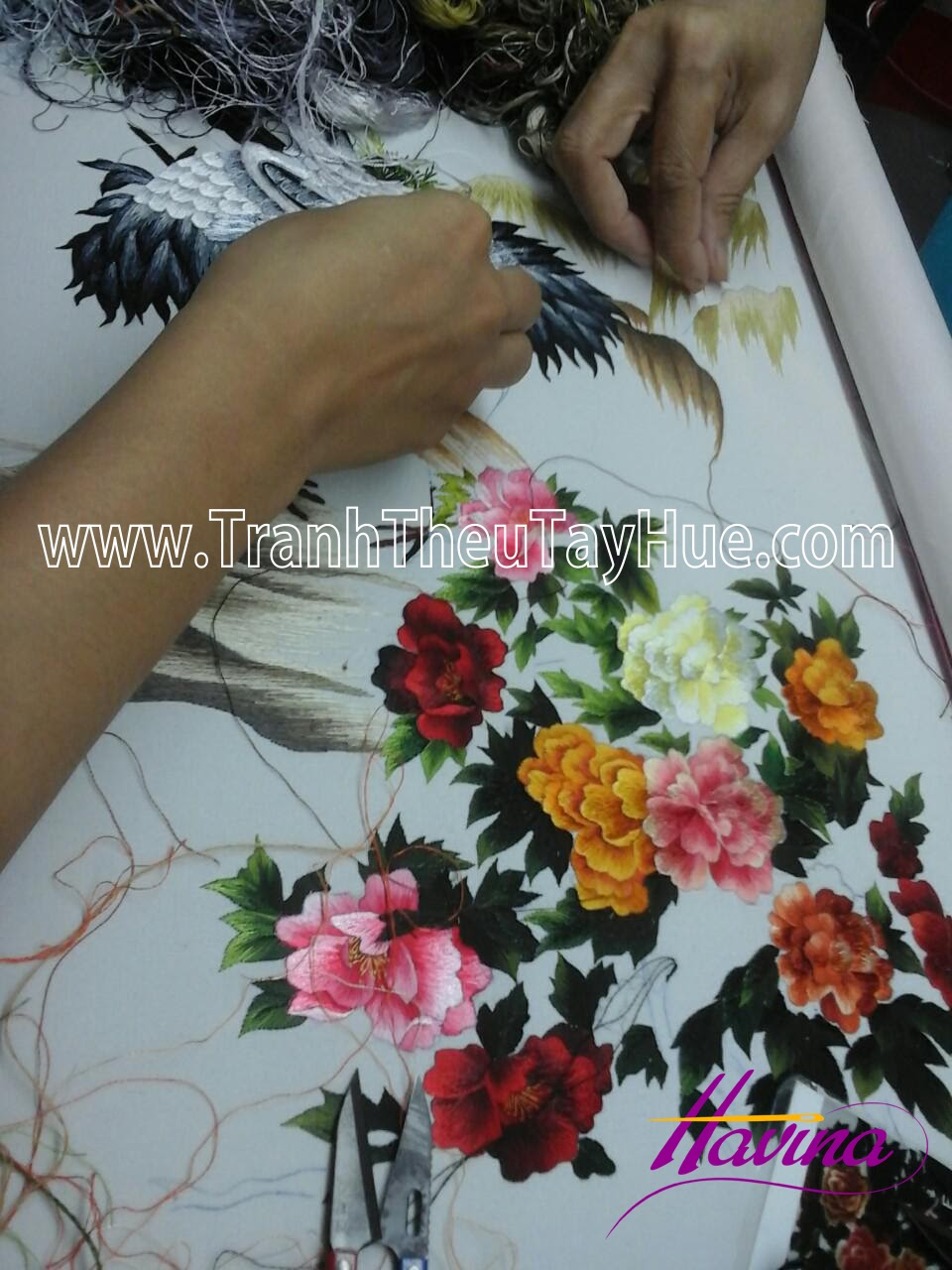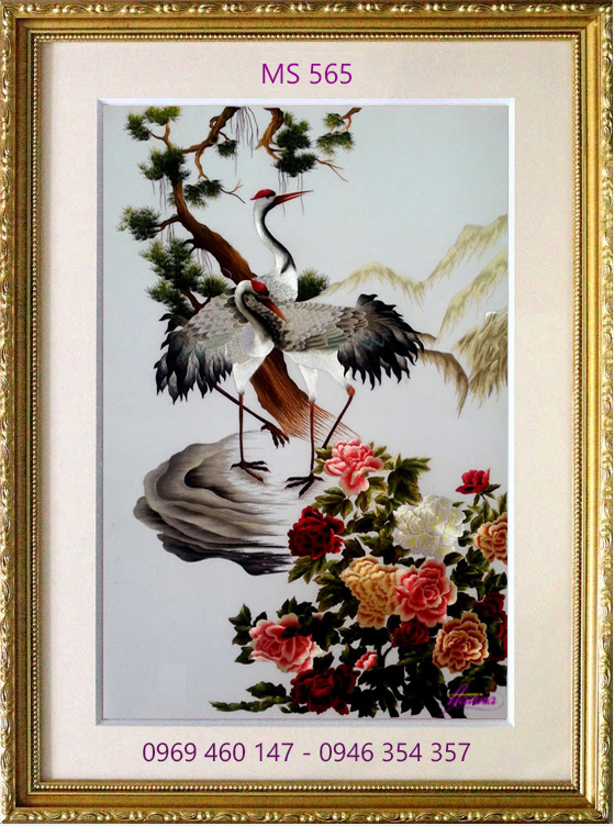Hoàn Thiện Tranh Thêu Tùng Hạc Mẫu Đơn MS 565 Theo yêu Cầu Chị Uyên