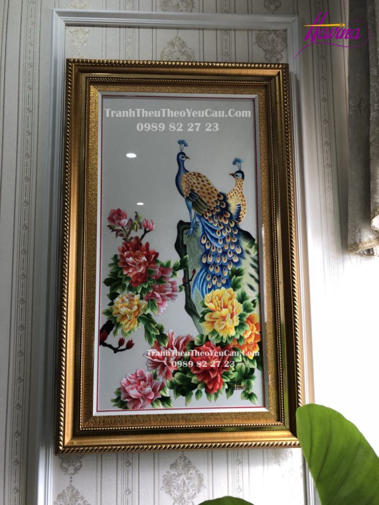 Tác phẩm nghệ thuật tranh thêu chim công theo yêu cầu