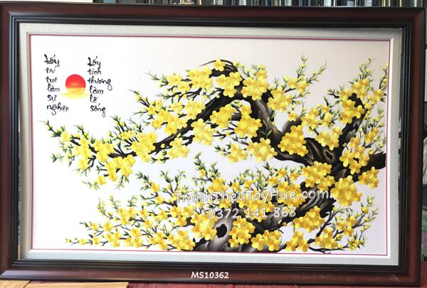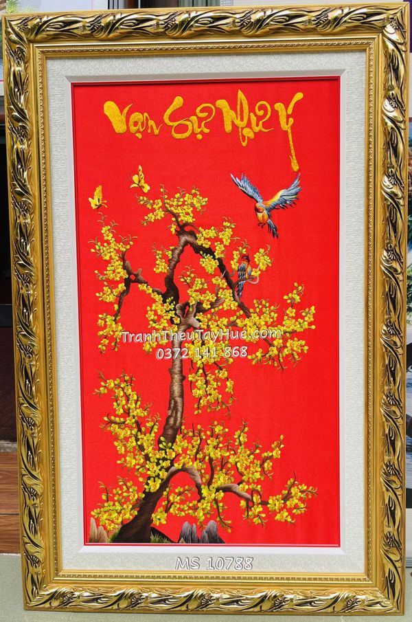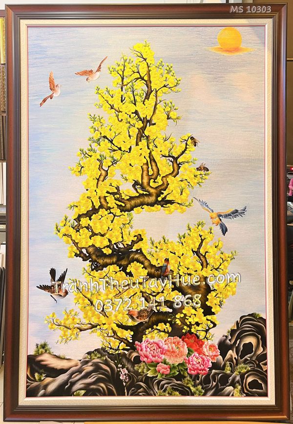 Tranh thêu hoa mai vàng treo trong nhà mang nhiều ý nghĩa sâu sắc và thường được xem là biểu tượng của sự may mắn, tài lộc và hạnh phúc. Dưới đây là một số ý nghĩa chính của tranh thêu hoa mai vàng: