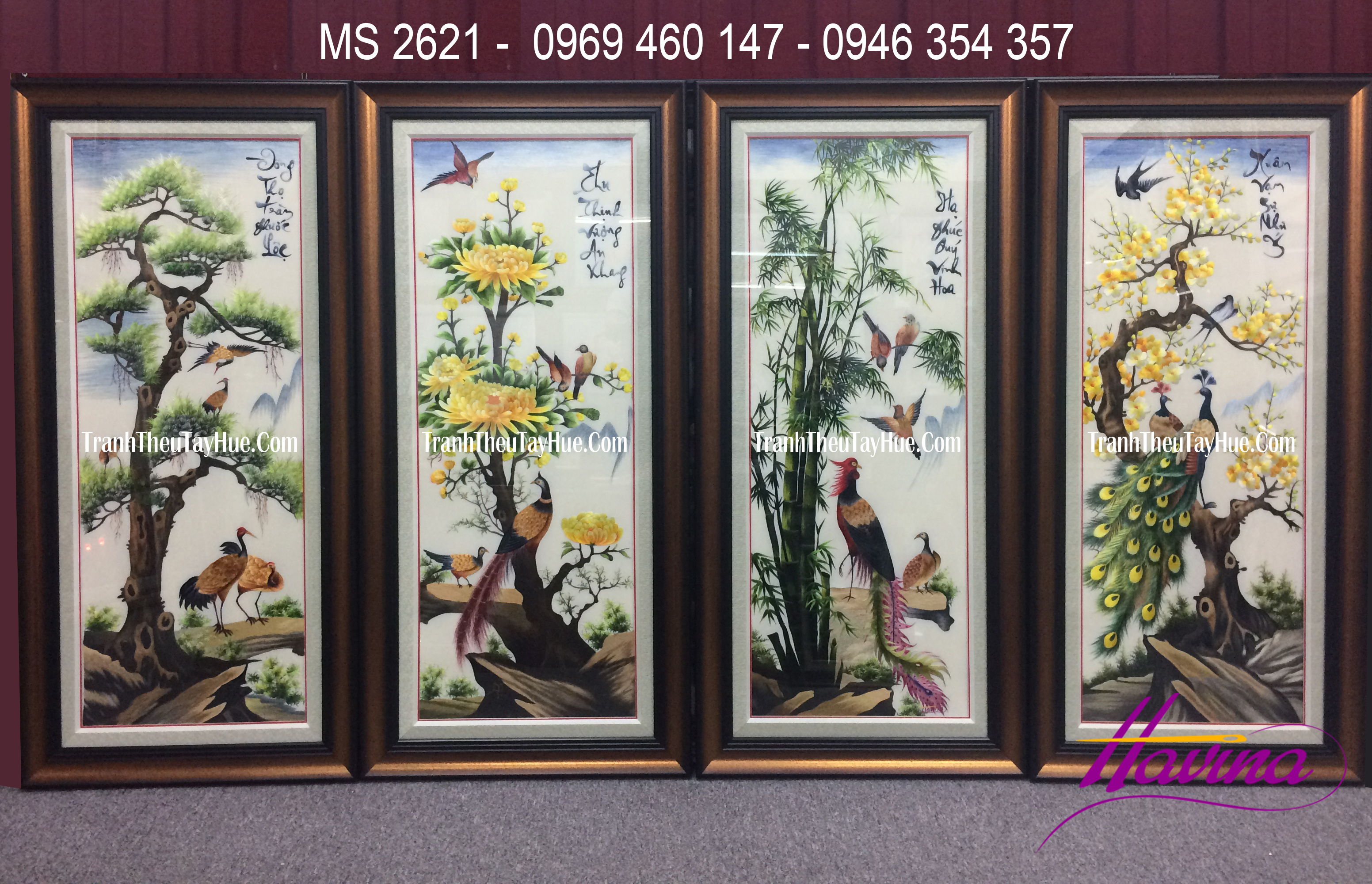 Tranh bộ treo tường phòng khách chủ đề tứ quý sẽ là làn gió mới mẻ mang đến thật nhiều sinh khí và tài lộc cho ngôi nhà của bạn. Giờ đây, bạn có thể mang cả không gian thiên nhiên xanh mát vào trong ngôi nhà thân yêu của mình, chỉ với 1 bộ tranh treo phòng khách chủ đề Tứ quý.Tranh thêu tứ quý là dòng tranh bộ treo phòng khách gắn liền với hình ảnh của các loài cây đại diện cho 4 mùa trong năm. Không chỉ là tranh diễn họa sự vật, tranh thêu tứ quý còn chứa đựng nhiều hàm ý về thời gian và ý nghĩa của cuộc sống.
