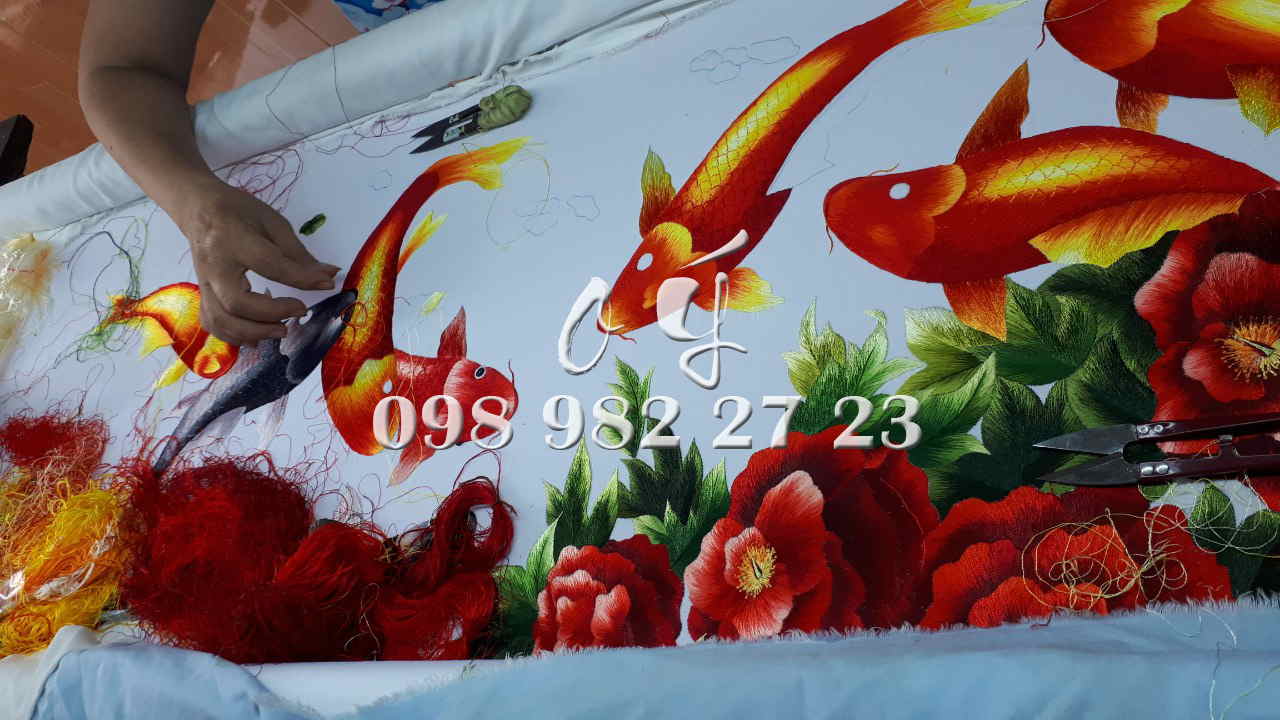 TRANH THÊU CÁ CHÉP HOA MẪU ĐƠN THEO YÊU CẦU CỦA ANH SANG ĐẾN TỪ PHÒNG KHÁM DIỆP Y ĐƯỜNG