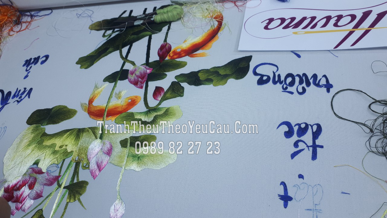 Tranh Thêu Cá Chép Hoa Sen Câu Đối MS 17A Của anh Định Ở Quận Bình Tân TPHCM