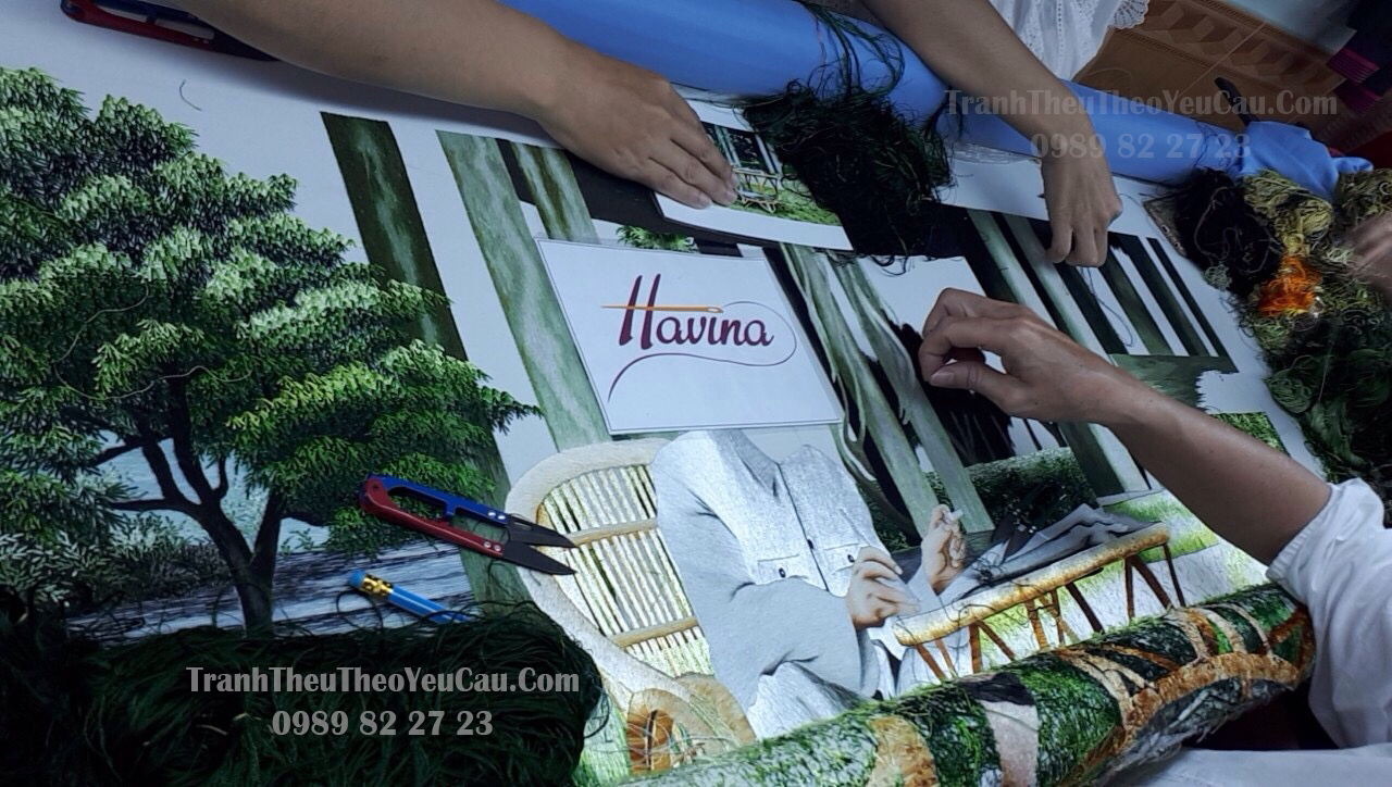 Tranh thêu chân dung BÁC HỒ ngồi GHẾ MÂY của anh Hưng tại TPHCM
