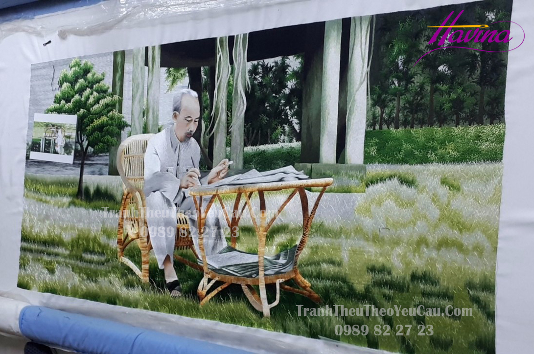 Anh Hưng là một khách hàng thân thiết của chúng tôi ở TPHCM. Lần này anh liên hệ và đặt thêu bức tranh về đề tài Bác Hồ rất ý nghĩa đó là bức tranh thêu chân dung Bác Hồ ngồi ghế mây làm việc.