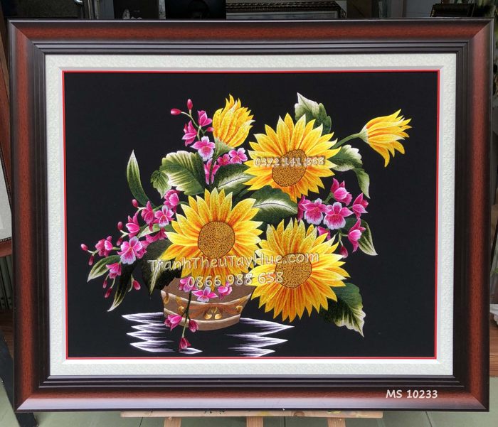 Tranh thêu hoa hướng dương Sắc vàng hy vọng giữa không gian sống