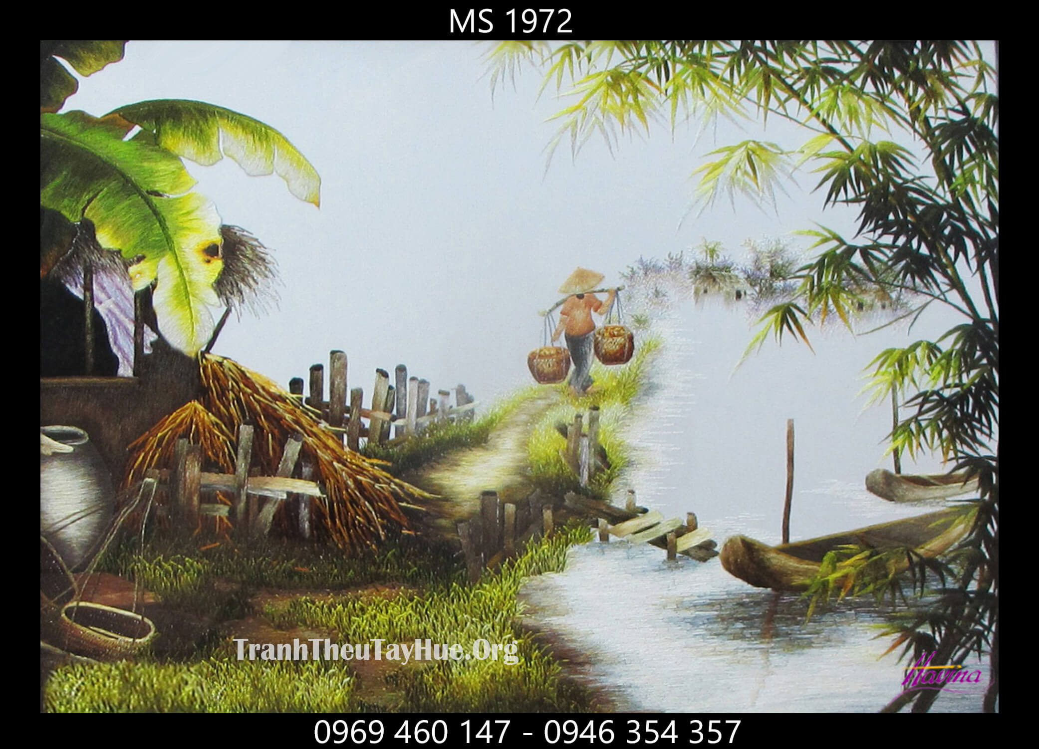 ⇒Xem thêm về tranh thêu phong cảnh làng quê