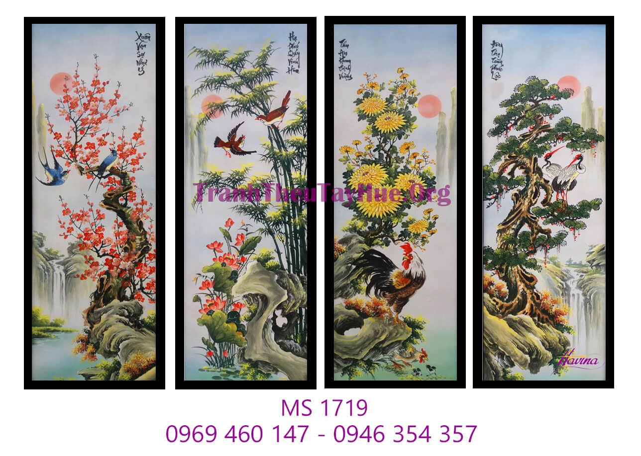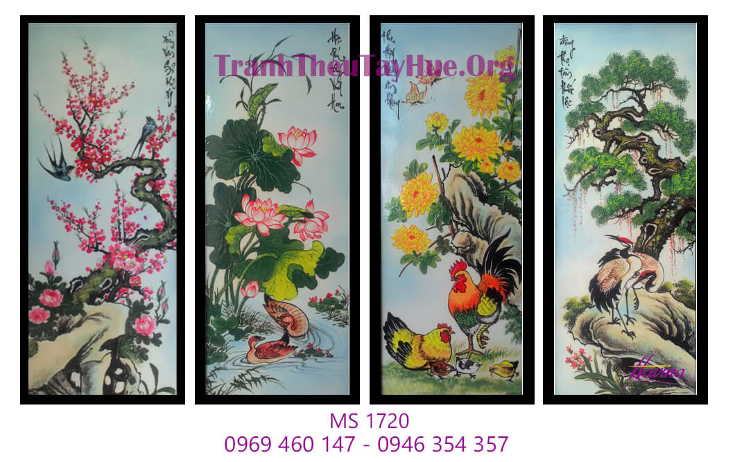 Tranh thêu tứ quý là bộ tranh gồm có 4 bức, thể hiện bốn mùa xuân – hạ – thu – đông trong năm. Với tranh thêu tứ quý, mỗi bức tranh là một loài cây, loài hoa tương ứng đại diện cho một mùa trong năm.