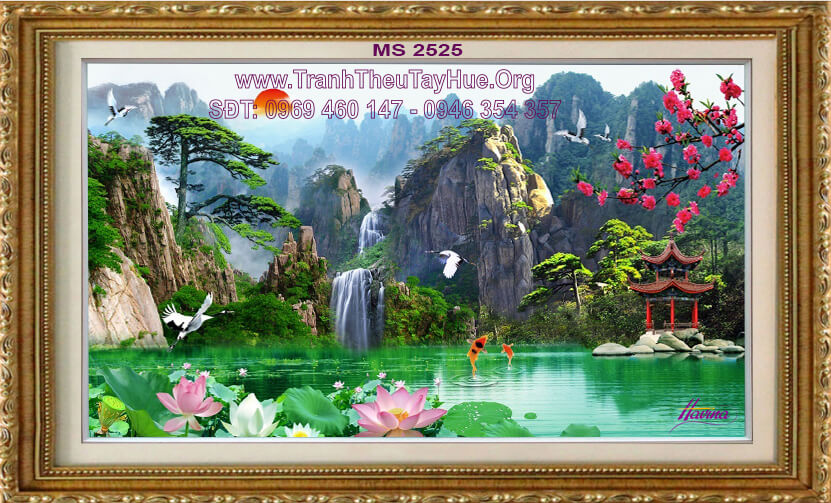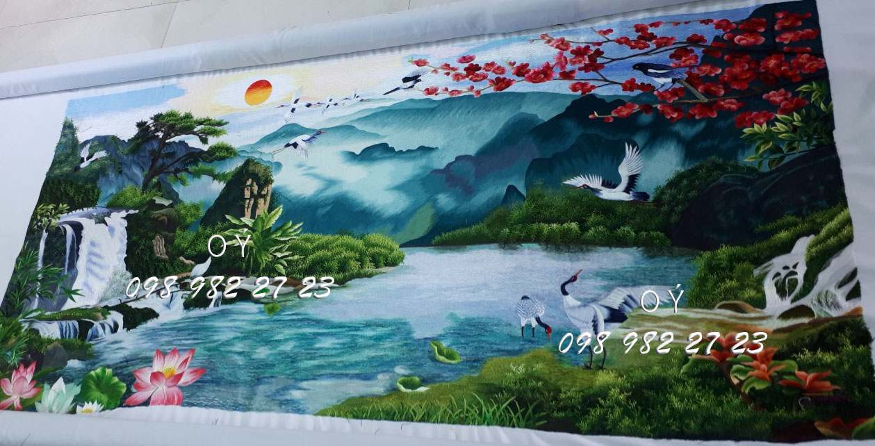 Tranh thêu sơn thủy hữu tình theo yêu cầu của anh Kiệt ở Sóc Trăng