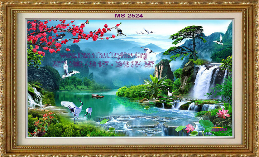 Tranh thêu sơn thủy hữu tình dành cho những người yêu thích phong thủy.