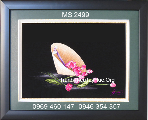 Trước chuyến công tác nước ngoài của mình, anh Châu - Chủ tịch tập đoàn Bến Thành Tourist đã đến với Tranh thêu tay Huế. Anh muốn tìm một vài tác phẩm tranh thêu để mang theo làm quà trong chuyến công tác của mình. Với sự tư vấn và hỗ trợ nhiệt tình của tranh thêu tay Huế, anh Châu đã chọn cho mình 4 tác phẩm tranh thêu rất đặc biệt về nón lá và hoa sen với ms 2499.