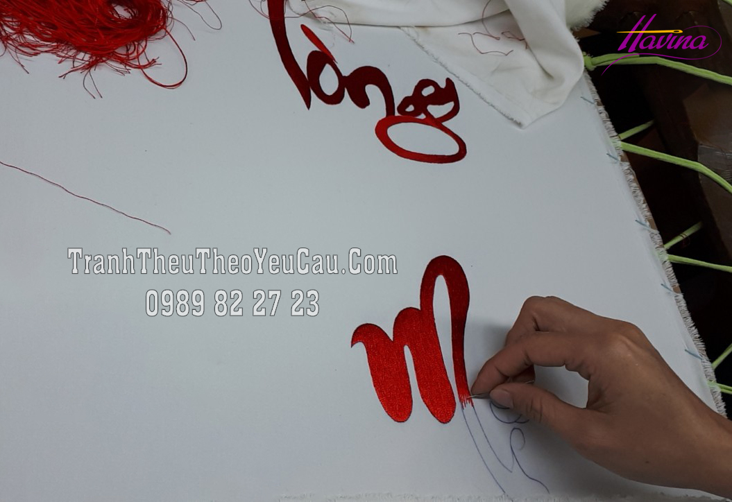 Câu đối đầy ý nghĩa được các nghệ nhân nhiều kinh nghiệm của tranh thêu tay Huế tỷ mỷ thực hiện, từng đường kim mủi chỉ chứa đựng tâm huyết và lòng yêu nghề của người nghệ nhân xứ cố đô xưa.