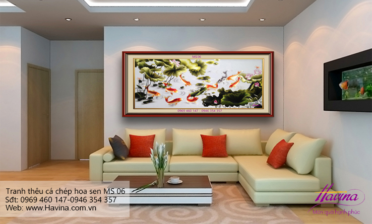 Vị trí treo tranh thêu tay cũng là một trong những yếu tố quan trọng cần lưu ý để không chỉ giúp bức tranh treo được nổi bật hơn mà còn giúp phòng khách tăng thêm nét thẩm mỹ. Thông thường khi trang trí phòng khách, các gia chủ thường ưu ái vị trí tường phía sau sofa để lắp đặt tranh. Một bức tranh thêu tay được treo ở vị trí đắc địa này cũng sẽ dễ dàng giúp các vị khách ghé thăm có nhiều cơ hội hơn khi vừa trò chuyện vừa ngắm nhìn tác phẩm nghệ thuật của bạn lựa chọn cho tổ ấm của mình.
