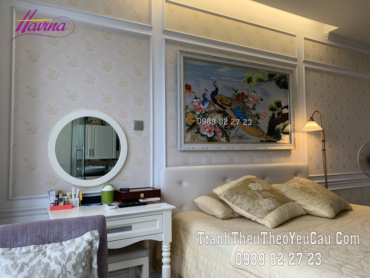 Nhất là những vợ chồng son, một bức tranh thêu chim công sẽ mang đến cho họ cuộc hôn nhân viên mãn và mặn nồng. Đây là lí do vì sao mà bức tranh thêu chim công là bức tranh treo phòng ngủ hợp phong thủy được ưa chuộng nhất hiện nay.