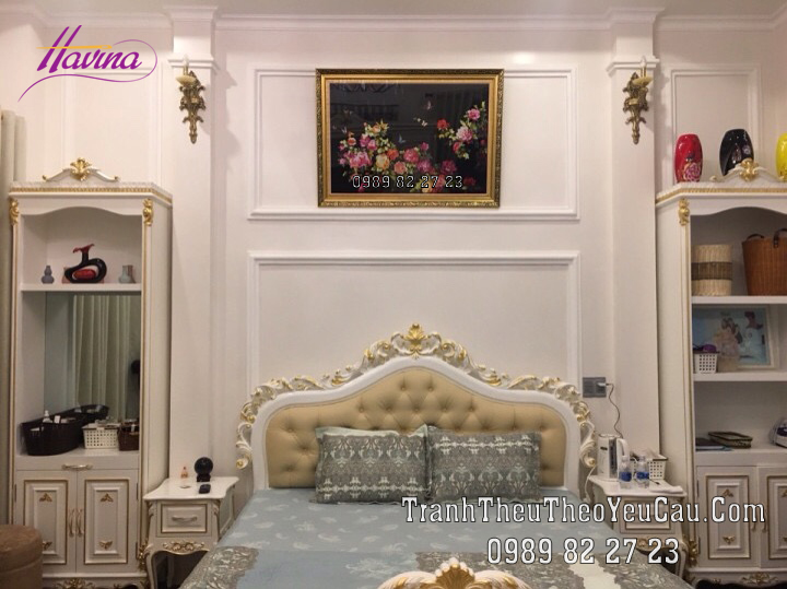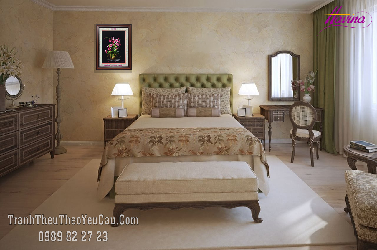 Bạn thử tưởng tượng xem, nếu phòng ngủ bỗng dưng có sự xuất hiện của một bức tranh thêu hoa lan, không gian chắc chắn sẽ vô cùng tươi mới và tràn đầy năng lượng.