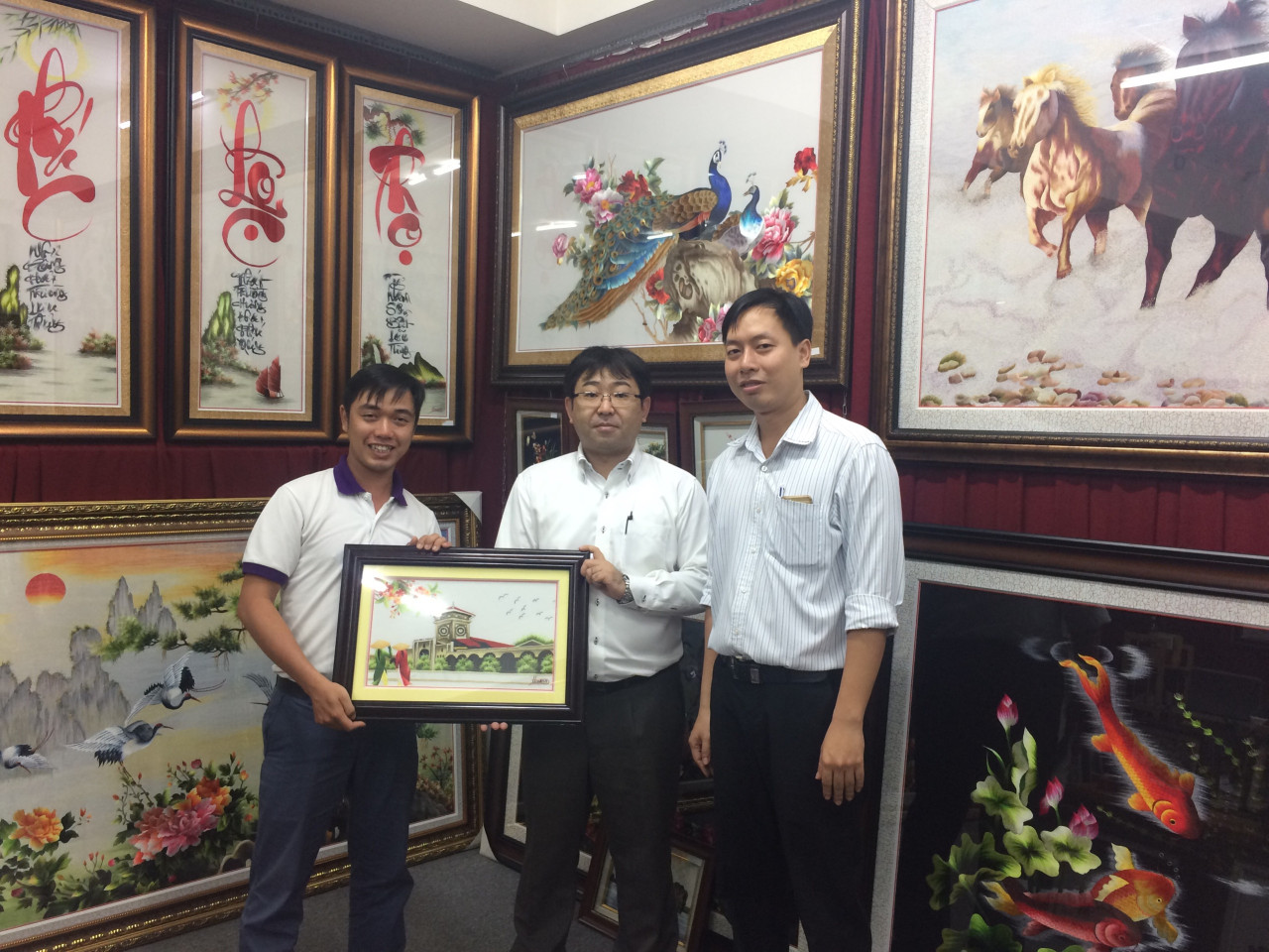 Đại diện công ty cổ phần ACECOOK Việt Nam đã đến showroom của tranh thêu tay Huế ở 137E, Nguyễn Chí Thanh, phường 9, quận 5, TPHCM để tìm mua một món quà để dành tặng đối tác. Sau khi tham khảo các mẫu tranh tại showroom của chúng tôi, đại diện công ty đã quyết định chọn bức tranh thêu Chợ Bến Thành ms 451.