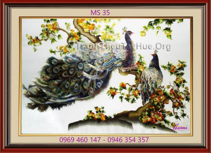 Liên hệ đặt thêu tranh chim công theo yêu cầu: 0372 141 868