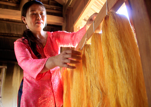 Tằm ăn dâu để cho ra lụa tơ tằm