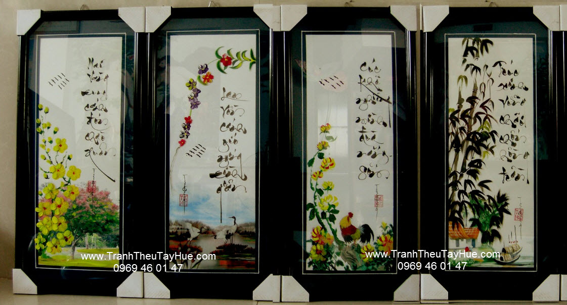 Tranh thêu tay truyền thống tứ quý 04