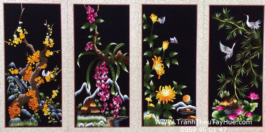 Tranh thêu tay truyền thống tứ quý 12