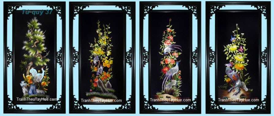 Tranh thêu tay truyền thống Tứ Quý Mai Lan Trúc Cúc( hoặc là một loại khác là Tứ Bình Tùng Cúc Trúc Mai) là tranh thêu truyền thống của Việt Nam được thêu HOÀN TOÀN THỦ CÔNG BẰNG TAY, bởi những thợ thêu chuyên tâm, lành nghề và dày kinh nghiệm của đất kinh thành Huế, những bức tranh Tứ Quý (Tứ Bình) này sử dụng các kỹ thuật thêu truyền thống đặc trưng của xứ Huế. Tranh thêu tay Tứ Quý Mai Lan Trúc Cúc( hoặc là một loại khác là Tứ Bình Tùng Cúc Trúc Mai) không chỉ là để trang trí mà còn mang nhiều ý nghĩa cầu may mắn, phú quý, sung túc và mang cả những yếu tố phong thủy trong đó.