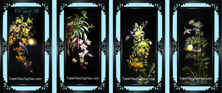 Tranh thêu tay truyền thống Tứ Quý Mai Lan Trúc Cúc( hoặc là một loại khác là Tứ Bình Tùng Cúc Trúc Mai) là tranh thêu truyền thống của Việt Nam được thêu HOÀN TOÀN THỦ CÔNG BẰNG TAY, bởi những thợ thêu chuyên tâm, lành nghề và dày kinh nghiệm của đất kinh thành Huế, những bức tranh Tứ Quý (Tứ Bình) này sử dụng các kỹ thuật thêu truyền thống đặc trưng của xứ Huế. Tranh thêu tay Tứ Quý Mai Lan Trúc Cúc( hoặc là một loại khác là Tứ Bình Tùng Cúc Trúc Mai) không chỉ là để trang trí mà còn mang nhiều ý nghĩa cầu may mắn, phú quý, sung túc và mang cả những yếu tố phong thủy trong đó.