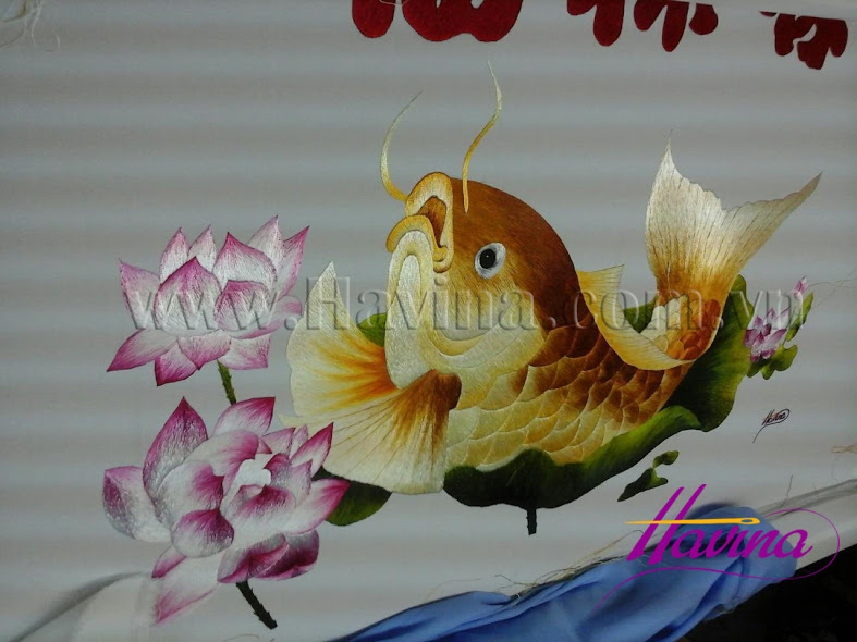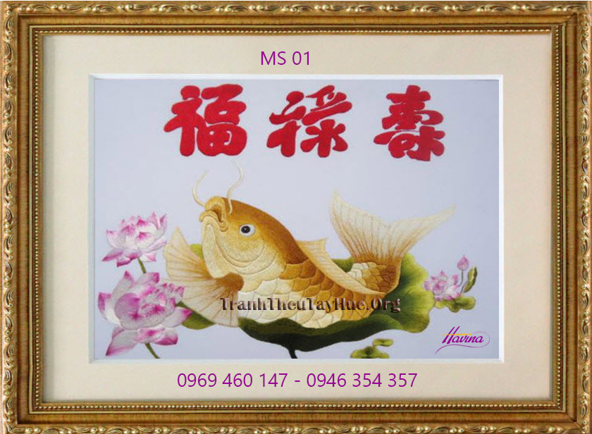 CHI TIẾT TÁC PHẨM TRANH THÊU CÁ CHÉP HOA SEN MS 01: