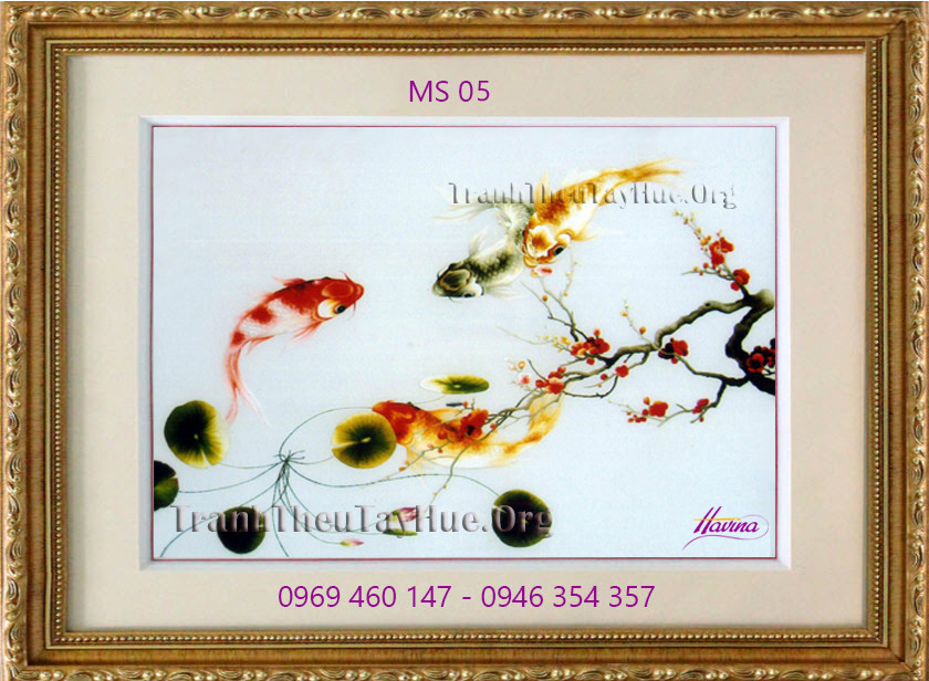 CHI TIẾT TÁC PHẨM TRANH THÊU CÁ CHÉP HOA SEN MS 05: