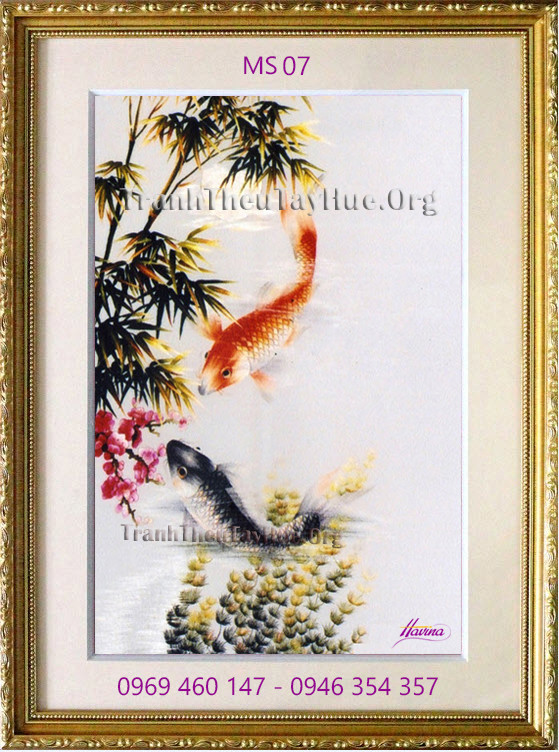 CHI TIẾT TÁC PHẨM TRANH THÊU CÁ CHÉP HOA SEN MS 07: